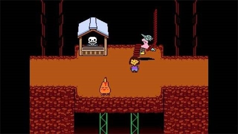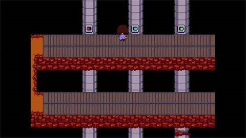 1. 既然愿赌服输,mettaton暂时不会对你动手。接着往前走,你会瞧见远方那透着不详气息的建筑物。随后,你会看到一台电梯,乘坐这台电梯前往“右二”。当从右二的电梯门走出时,你会遇见一个怪物,它名为心火人。在左侧的小亭子前,你又会碰见sans,他会要求你顶起N条香肠,然而只要你一开始走动,香肠就会纷纷掉落。