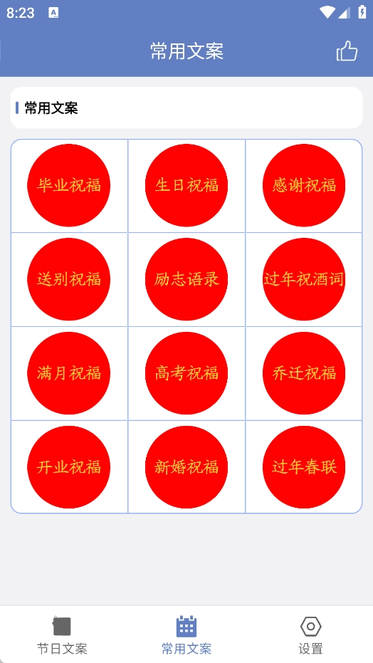 1、这款软件提供的文案类型丰富多样,广泛涵盖商业推广、个人祝福等众多领域,可满足不同场景的文案需求。