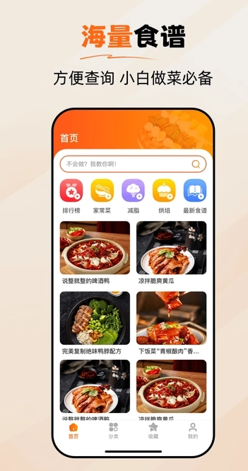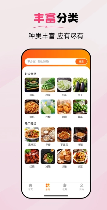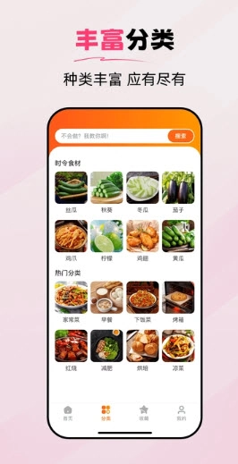 1.食谱更丰富、更完整,用户还可以根据分类,搜索所需的食谱。