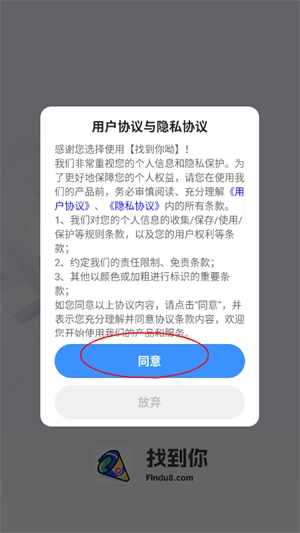 2. 初次打开时,需同意用户协议。