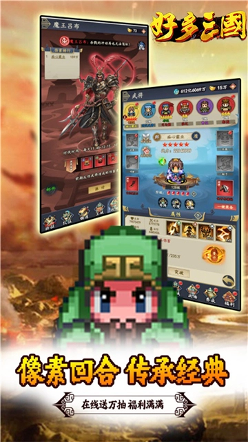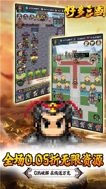 好多三国(仅0.05折),这是一款以三国为题材,采用像素画风的回合制战斗冒险游戏。在游戏中,你将穿越到烽火连天的汉末时期,化为主公,招募英勇的武将,建造城池,开拓疆土,于九州大地之上逐鹿中原,实现你的英雄梦想,书写属于自己的传奇篇章。喜爱此类游戏的小伙伴们,赶紧来下载好多三国(0.05折)体验一番吧。