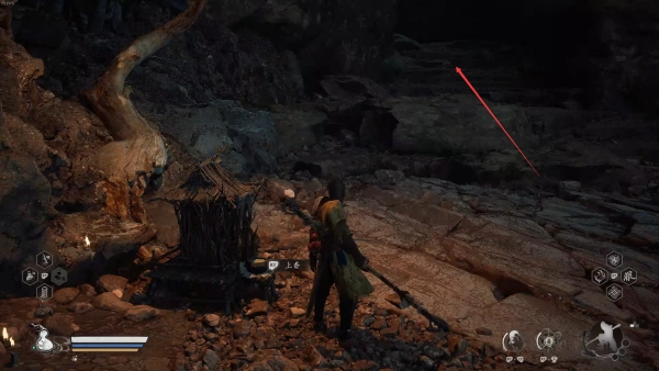 9、玩家通过阶梯的这个位置,选择左边的路,可以看到土地庙,需要上香激活传送点。