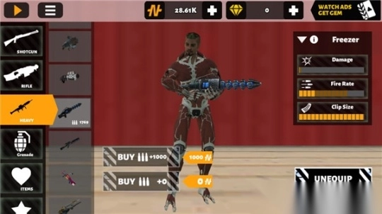 6、商店内有各种武器和道具,我们可随意切换,找到自己喜欢的武器购买即可。