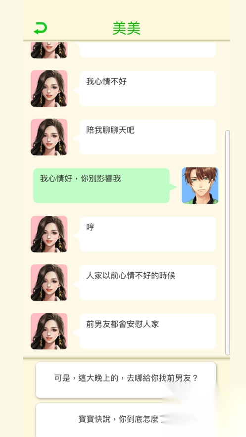 4、丰富的剧情及对话内容,可以选择不同的对话回复。