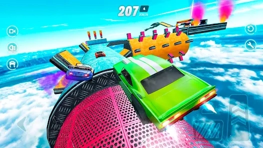 2、游戏中提供多种特技动作,包括跳跃、翻转、旋转等,玩家需要精准控制赛车完成每个动作;