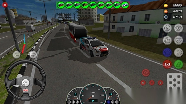 4、点击加油按钮开始启动汽车进入公路,行驶车辆的时候可以观看前方和左右两边的方向镜。玩家到后期还可以还可以升级自己的警车,或者是给自己的警车来加装上各种不同的装备或者是附件,以便来增强自己的警车性能,在游戏中玩家们可以追捕到更多的犯罪。