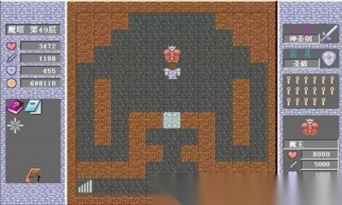1)玩家进入游戏第49层,击败假魔王,获取红钥匙和攻击力加倍道具。
