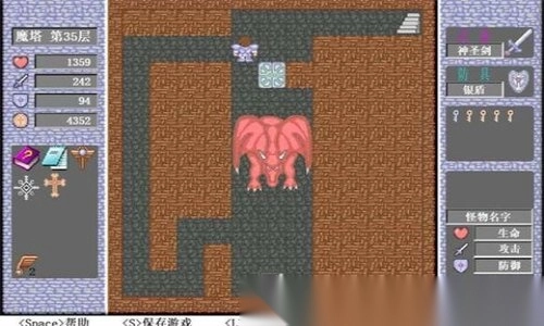 2)神剑之证:神剑之证+5,当勇者面对怪物时,按W键可以使面前一格的怪物变为绿色史莱姆,使用成功后,神剑之证-1