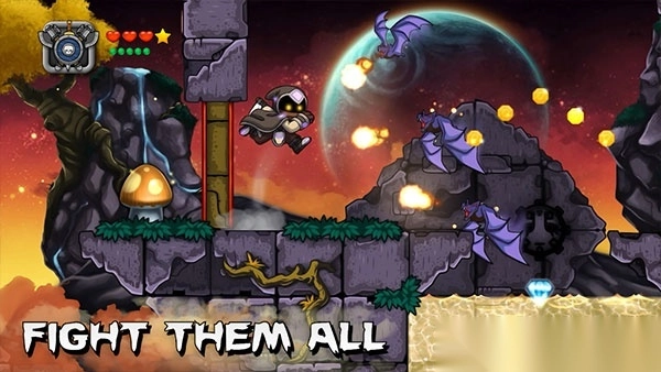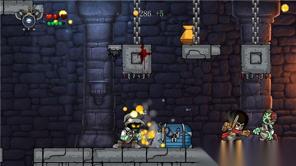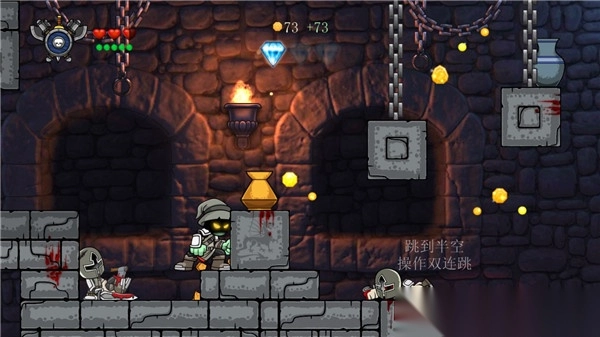 不仅如此,游戏还设有自定义角色系统,玩家可以自由选择外观、装备,挑选人物职业,还能定制护甲、跳跃力、物理伤害等属性,打造专属于自己的独一无二的英雄。在闯关途中,玩家还会邂逅许多隐藏区域,这些区域的机关中藏着宝箱、装备、钻石等稀有道具。收集这些宝物,就能够升级武器、购买道具,是一款趣味性十足且十分耐玩的冒险游戏。