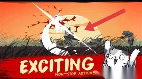 3、体验“EXCITING-NON-STOP-ACTION!!”战斗,跟随箭头,操控武士猫释放技能(如剑气),击败敌人,推进关卡。