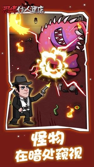 2、酒店中潜伏着凶恶的怪物,它们会在黑暗中突袭玩家,必须迅速反应并清理威胁,保障自身安全。