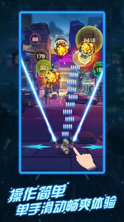 赛博朋克风的弹幕射击游戏,凭借风骚走位躲开形形色色的进攻!