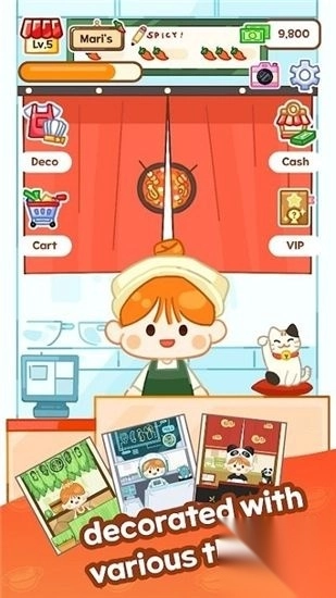 3、50+种不同的装饰物品,从餐厅装修到各种服装,创建你自己的麻辣烫餐厅,充满你的个性。游戏优势
