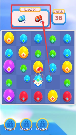 1、基础机制,玩家通过交换相邻蛋蛋形成三消组合,根据消除规则获取分数,逐步解锁更高阶关卡,体验进阶乐趣。