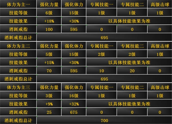 因此,在技能提升上,就可以以强化体力为主要升级方向,同时,适当升级强化力量和专属技能。