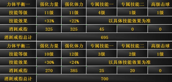 这种升级适合球员自身身体能力属性较高,体力相对不是那么缺乏的情况下,可以考虑体力和力量两者平衡提升。