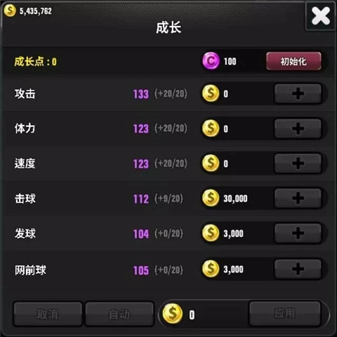 3、省钱均衡型:18点攻击,18点体力,18点速度,17点击球,0点发球,18点网前球。