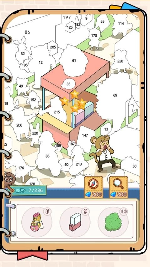 2、数字拼图机制,根据画面标注的数字,寻找对应图案并填充空白区域,全部匹配即可通关,兼具策略性与趣味性。