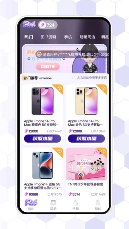 诸多好礼资源,各种手机、图书、明星周边等全都有,满足用户兑换需求;