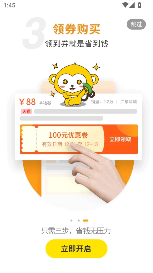 2. 随后简要浏览应用的三步功能介绍页面,滑动完毕后点击“立即开启”按钮进入下一步。