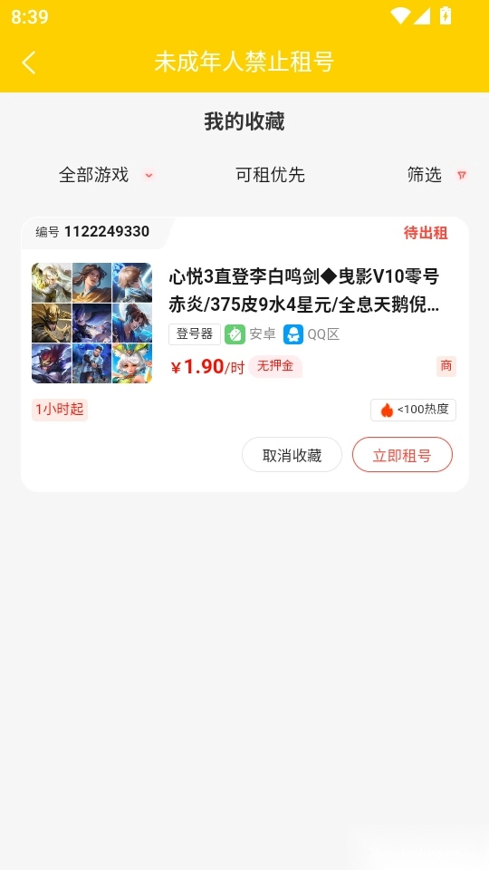 满足用户多维度游戏账号租赁需求,海量账号一键获取;