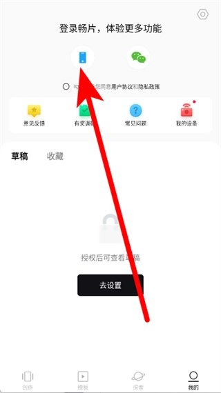 打开畅片,点击底部导航栏的我的,进入登录页面。