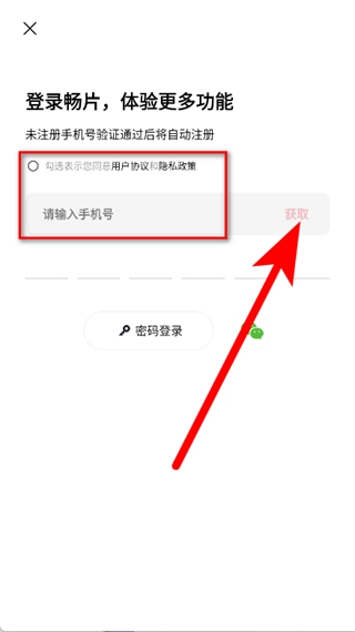 勾选同意用户协议和隐私政策后,输入收到的验证码,即可完成注册登录流程。