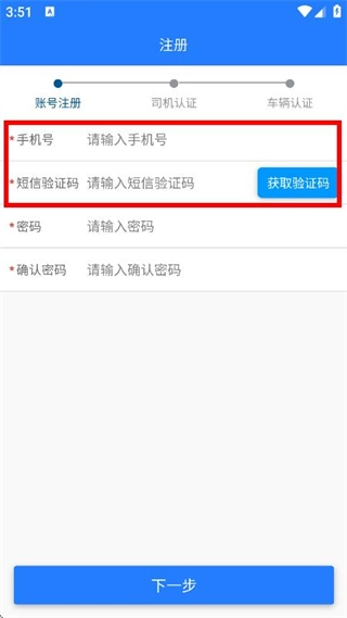 在账号注册页面,输入手机号后点击获取验证码按钮,再输入收到的验证码。