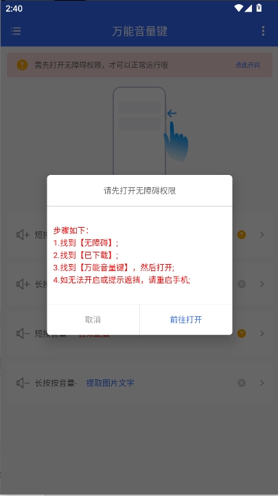 万能音量键软件免费版是一款革新性的多功能音量键管理应用,致力于把您手机上看似平凡的音量键,转变为一个强大的快捷操作触发工具。借助十分简单直观的设置,您就能完全改变手机的使用模式,显著提高效率与乐趣。