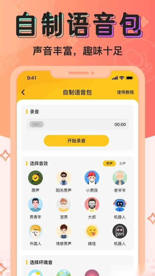- 保存于应用,集变声、录音和音效播放于一身
