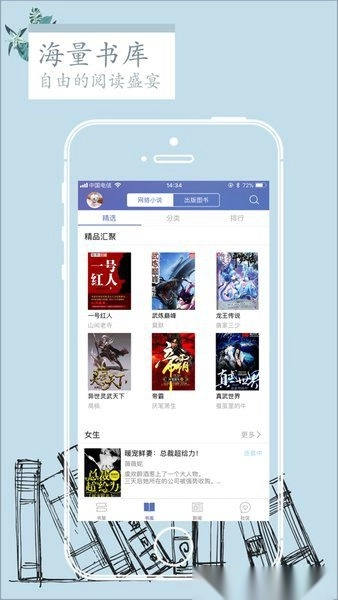 是看小说必备电子书,支持多种阅读模式,没有广告干扰,给您舒适洁净的阅读体验,可以自由来自网友分享的图书,你每一次同时也会给其它网友反馈更精准的书籍信息。