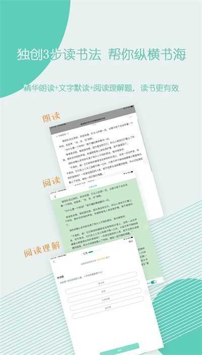 每天保持30分钟的阅读时长,通过朗读评测、原书默读与随书阅读理解测试三种模式相结合的方式,可使读书效率和效果提升1.5倍。