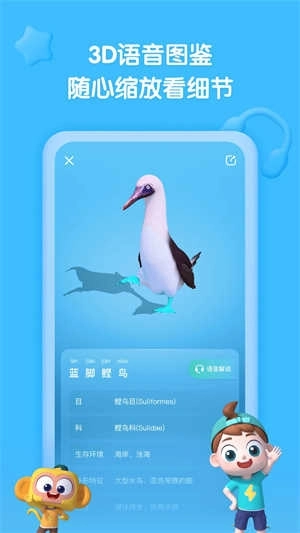每个主题配备的交互练习题数量均不低于96道,题型设置丰富多样,包含拖拽、拼图、点选等多种形式;同时搭配不少于25个3D语音知识图鉴,每个图鉴都支持自由放大缩小与360度旋转操作,能让孩子以沉浸式的方式观察各类细节,再结合语音讲解,进一步帮助他们巩固知识难点。