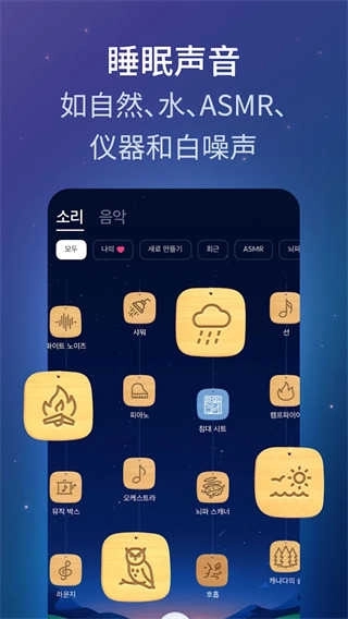 选择喜欢的声音和音乐打造睡眠组合音乐。