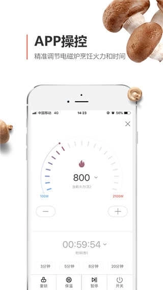 -智能操控:借助蓝牙让手机与安利皇后?智能烹饪电磁炉相连,能够对电磁炉的火力、时间进行调节,还能实现童锁、保温、暂停、关机等功能(需注意,电磁炉处于关机状态时,无法通过该方式开机)。