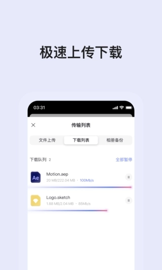 1.不限制上传速度,畅享极速传输
