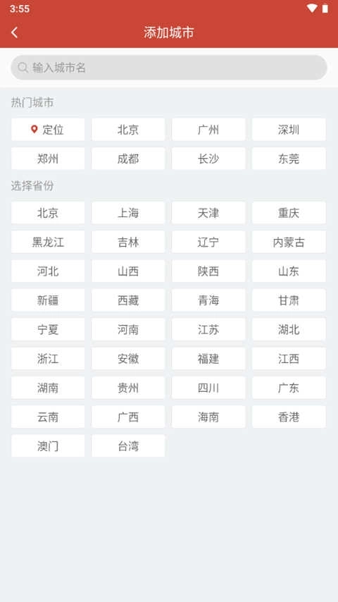 5、点击地理位置,可以自由切换需要查询的城市