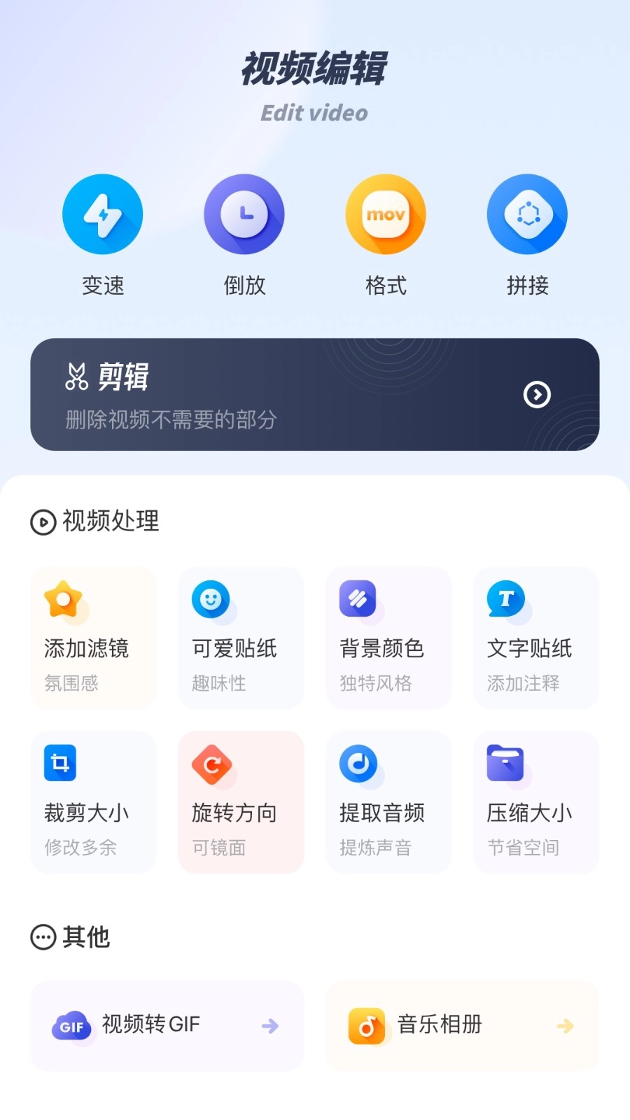 2、开启软件,助你随时随地轻松进行视频剪辑,打造出各异的效果。