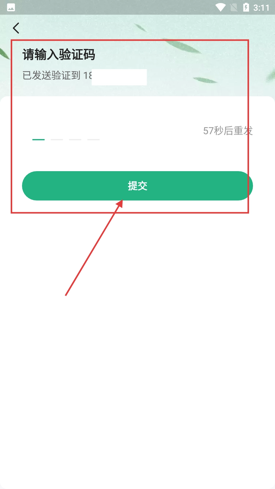 4、于验证码输入界面,填入接收到的验证码,然后点击【提交】,即可完成登录操作。