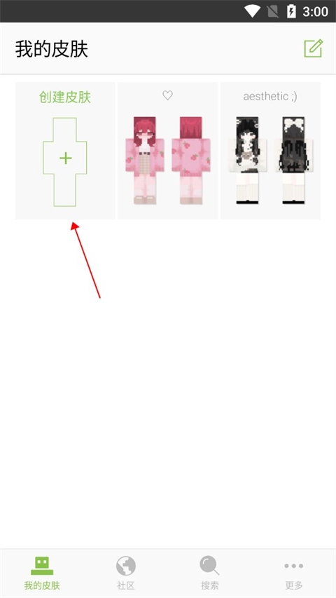 1、创建皮肤,除了默认的3款皮肤外,你还可以通过相册或文件等方式引入别的皮肤进来。