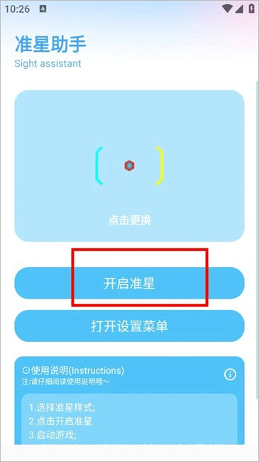2、点击“开启准星”