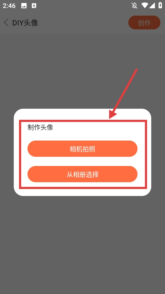 2、点击界面右上角的【创作】按钮,此时会弹出用于制作头像的图片选择相关选项。