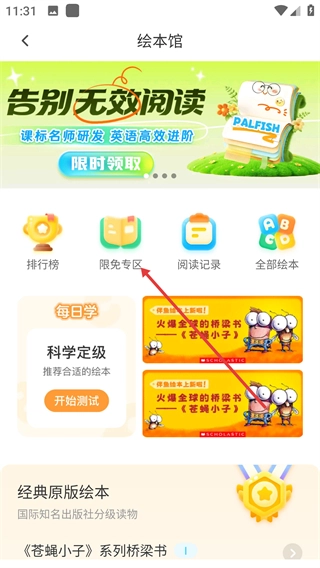 2、在绘本馆页面点击【限免专区】选项,进入限免专区页面。