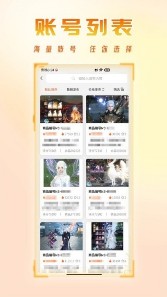 1、该软件具备海量游戏账号资源,玩家能够依据自身需求,搜索到心仪的游戏账号与装备。