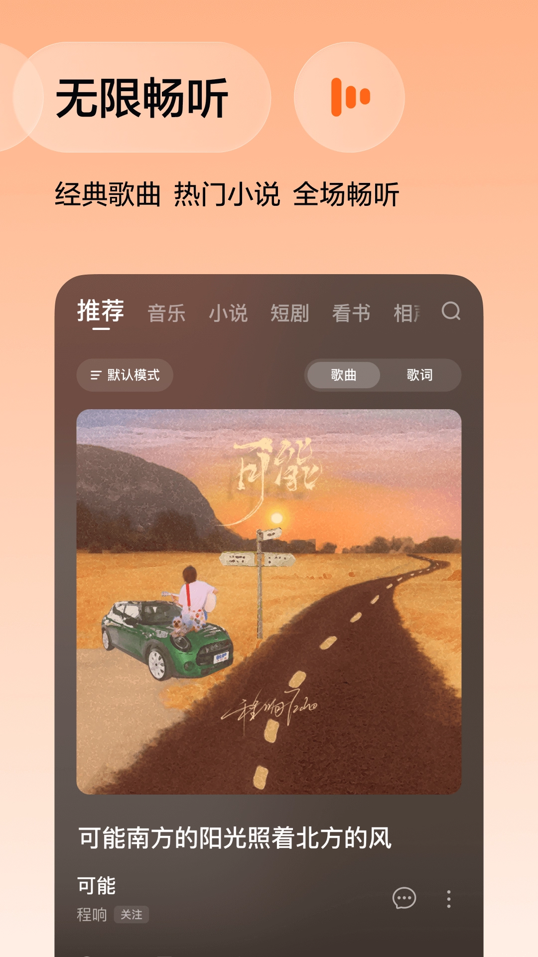 1、整合音乐播放、有声收听、K歌功能,形成综合音频服务体系,无需切换多款软件。