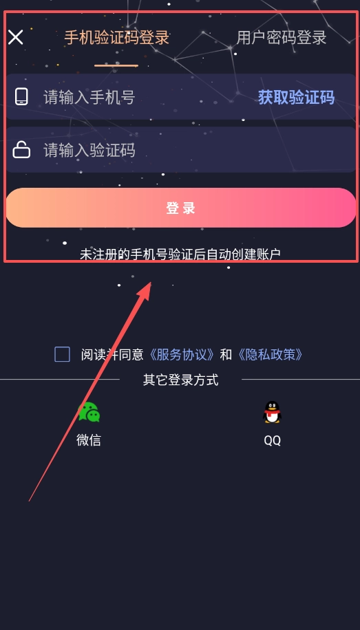 1、在登录页选择手机验证码登录,输入手机号获取验证码,勾选同意服务协议和隐私政策,这样就能马上使用所有功能了。
