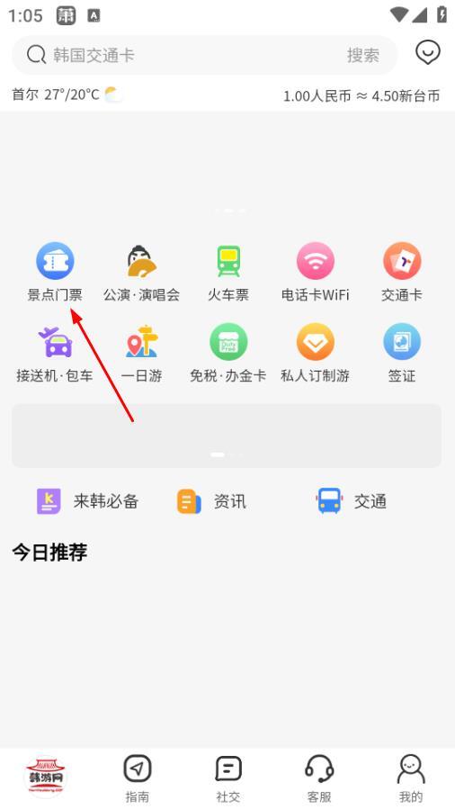 1. 于韩游网首页,点击“景点门票”选项,从而进入景点门票分类页面。