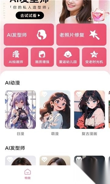 它提供了多种风格可供选择,用户只需选择喜欢的风格,还有各种AI发型等待用户来体验。