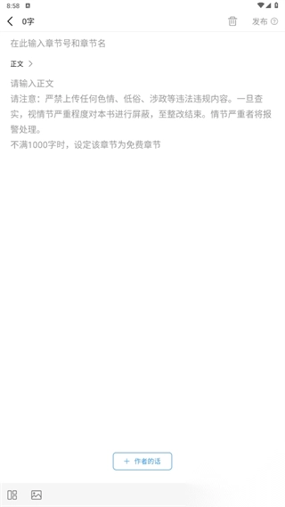 5、章节写完后可选择“发布”或“保存为草稿”;