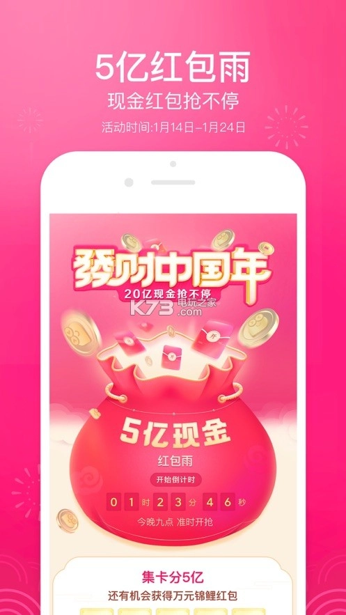 进入个人页面后,点击 发财中国年 10亿现金抢不停 的活动图标